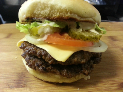Burger er lett å lage og ikke mist godt,man trenger bare en bra kjøtt ,salt og pepper .Men siden jeg er så glad i burger med litt krydder så ble det en deilig burger med litt krydder smak. Hjemmelaget brød og dressing.