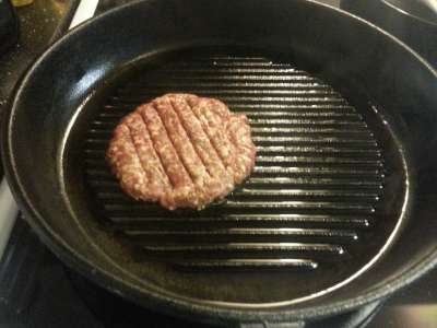 Varm en grilstekepanne med litt olje på middels til sterkvarme i.Stekk burger 3-4minutter på hver side .
