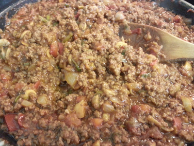 400g kjøttdeig av okse med 250g kjøttdeig av lam,blande sammen.