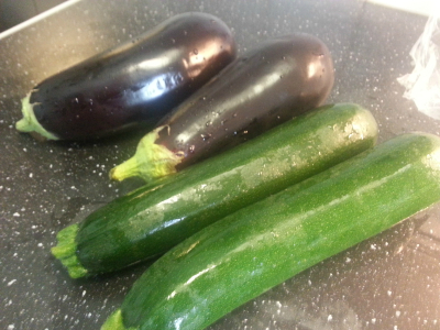 Først skærer du squash og aubergine i skiver og drys med fint salt og la da står i 20 min over kjøkkenpapir.