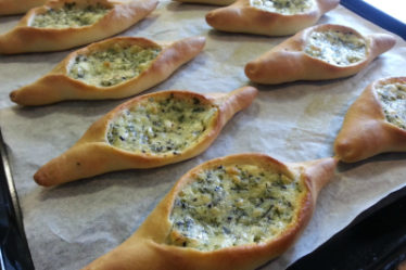 Ta deigen opp på bakebordet og kjevle(med hjelp av litt mel) en leiv som er ca. 2 cm tykk.