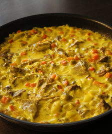 Lammekjøtt i creme fraiche med karri ,erter og gulrøtter er kjempe god ,alle ingreidensene finner du i vanlig matbutikk.Å koke kjøttet først det er av avhengig på kjøtt type om du skal bruke mørt lammekjøtt så du trenger ikke å koke den lenge men hvis skal du bruke fårikål kjøtt så må kokes lengere. Ønsker …