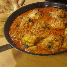 Curry kyllingklubber med fløte og tomatsaus