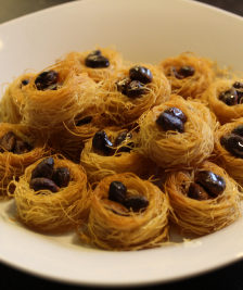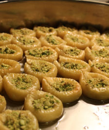 Den dessert kommer fra Syria og lages i andre arabiske land med mest kjent for meg fra Syria ,deigen lager av en arabisk ost som man kan bruke mozzarella ost i stede for og semulegryn.Fylles med ost krem .Og dekkes med sirup og litt pistasjnøtter. Hvis dere er ikke glad i rose vann så kan …
