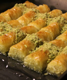 Swar betyr armbånd og el sit er kjerringa ,fordi det ligner på krøllete armbånd til damer.Og det er en slags baklawa type som fylles med pistasjnøtter og toppes med sirup. Super gode og fine 🙂 Ingredienser: 1 pakke tyrkisk yufka eller gresk filodeig 180g smør,smeltet eller ghee 100-150g pistasjnøtter,malt i en morter eller blender Sirup …