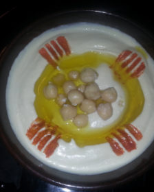 Hummus(laget av kokt og mosede kikerter blandet med tahini ,hvitløk,olivenolje,sitron) er veldig populær i midtøsten ,noen spiser det som forret og andre som hovedrett. Hummus er arabisk ord og betyr kikerter.Vi spiser det nesten alltid med brød. Og du kan pynte det med spisskummen ,sumak,olivenolje,paprika eller chili) Her er tahini (malt sesamfrø)og det er veldig …