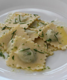 Ravioli er fylte pasta som du kan fylle med forskjellige ingredienser etter hva du liker men jeg valgt en klassisk ravioli fyll spinat ,ricotta og parmesan . Serveres med olivenolje eller smeltet smør med friske urter,mange bruker slavie blader men jeg hadde ikke så brukt urter som jeg hadde i hagen min. Ingrediensene finner du …