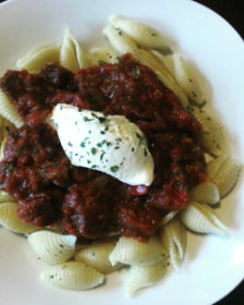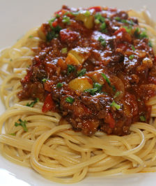 Spaghetti med kjøttsaus som har smakene fra midtøsten ,oliven ,olivenolje ,urter ,og kjøtt skiver,slik at man får smake av kjøttet som er mørt og godt. Tørkede pasta lages i midtøsten før lenge siden og som det står i wikipedia (Tørket pasta lages av glutenrik durumhvete som trives godt på Sicilia og på 1100-tallet hadde pasta blitt en eksportartikkel. …