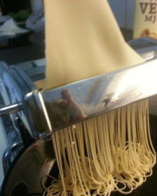 Det er veldig lett å lage pasta hjemme enn man tror ,spennende og smaken er mye bedre enn den man kjøper i butikken ,det du trenger er pastamskin ,mel og egg.Du kan bruke vanlig hvetemel eller den italiansk Tipo 00 som innholder mer gluten en vanlig mel ,som gir mer strekkbar,og du får en riktig smidig og konsistens …