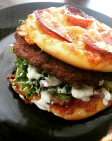The hangover burger (Pizzaburger,blandingen av pepperoni pizza og burger)