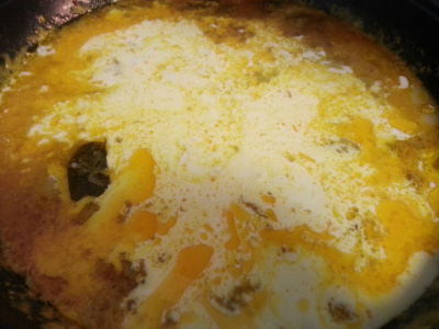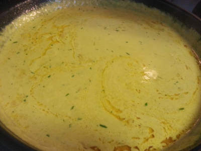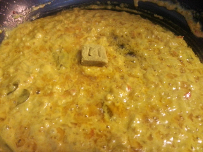 Ta kremen som ligger øverst i kokosmelk og tilsett i stekepanne.