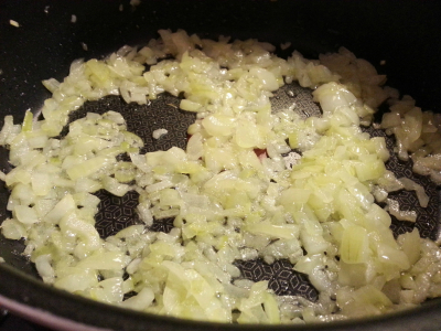 Varm en stekepanne og ha i 1ss olje ,tilsett løken og stek til det er blank og myk.