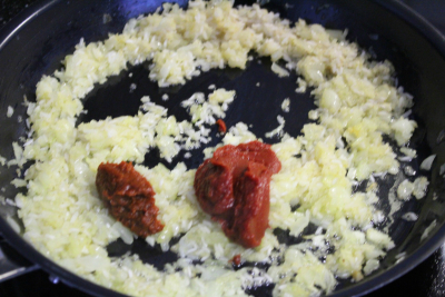 Ha hvitløk over og surre litt så chilipurre og tomatpurre.