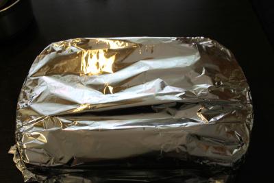 Stek midt i ovnen ca 40 minutter.Tar du bakepapir og aluminiumsfolje av formen