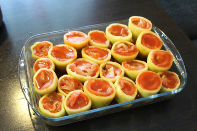 2-3 tomater ,i skiver for å lokke toppen til paprika