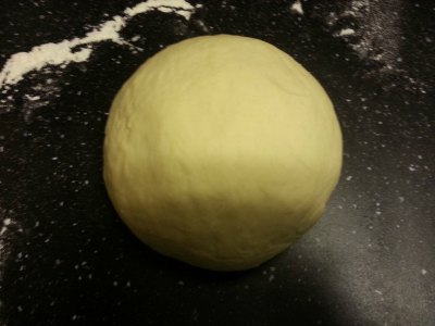 Ha deigen på lettmelet kjøkkenbenken og elt i 5 minutter.Ha på kjøkkenhåndkle og la den heve i 15 minutter.