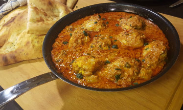 Serveres med  ris og nanbrød Her