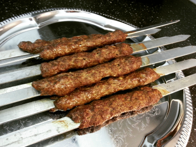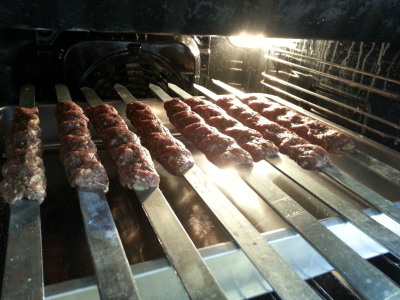 Snu shish kebab ofte hver 1 min til kjøttet er gjennomstekt ca 20 minutter (kan pensles med ghee/smør eller litt olje med chilipulver)