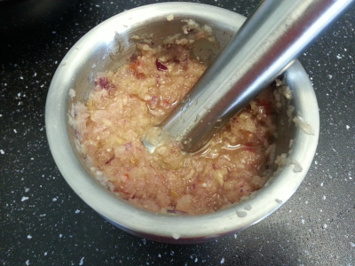 1 frisk rød chili uten frø,grøvhakket(bruk mindere om du er ikke så glad i sterk mat)