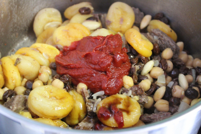 Tershaneh eller Qaisi kalles i Irak og det finnes slik rett i Nord Afrika som heter tagine hlou Her.Den lages på forskjellige måter noen bruker ikke tomatpure ,kikerter og noen bruker det.Du kan bruke svisker også om du har hjemme.Kanskje det høres rart ut aprikoser med sukker og kjøtt i Norge men det er godt og søt ,du kan bestemme selv om du vil ha kjøtt med retten eller ikke ,det finnes mange i Irak lager det uten kjøtt.