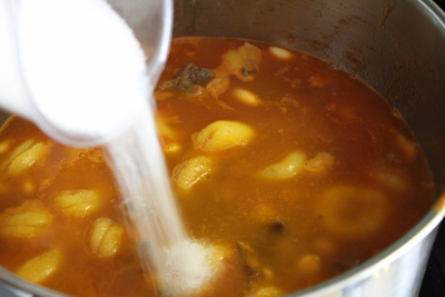 Så kraften og rør alt sammen,tilsett sukker litt om gangen mens du røre.og ha i salt,kanel og kardemomme,la den små koke i 5 minutter.