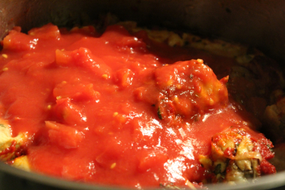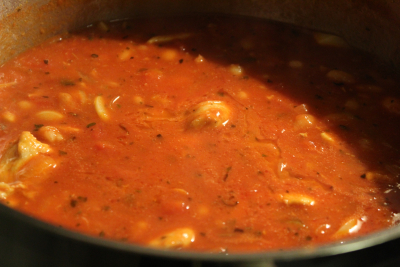Og kraften av kyllingen,salt og pepper.Bland alt sammen ,la den små koke i 20 -30 minutter.