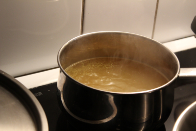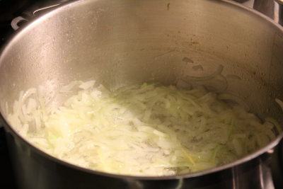 Mens kraften koker ha en stor kjele med olje og sett over varme,tilsett løken og stek til den er blank og myk.