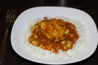 Fasolia /hvite bønner gryte som vi lager i Irak ofte med lammekjøtt og enkle ingredienser som hvitløk ,løk og litt krykker eller uten noe krydder .Jeg valgt kylling i stede for lammekjøtt ,og det ble kjempe god .