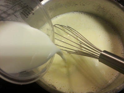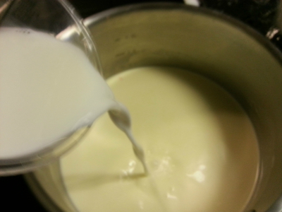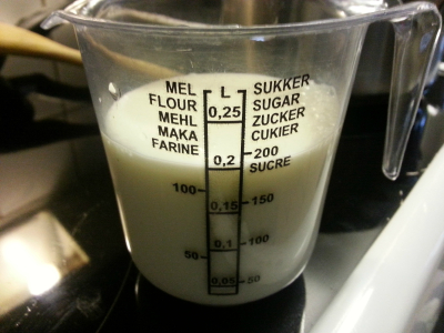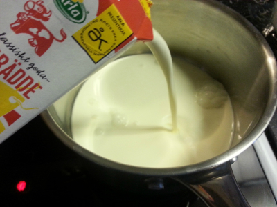 Tilsett 2dl melk og la den små koke i 3 minutter