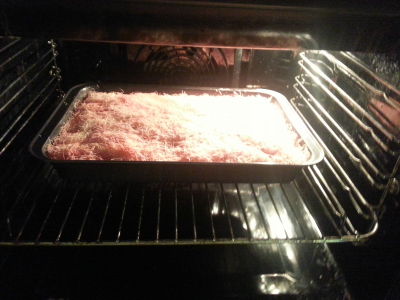 Legg den i en form og dra dem fra hverandre med begge hendene..dekkes med plasfolje.