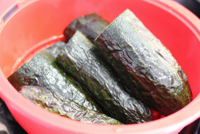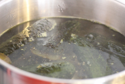 Og legg alle sammen i kokende vann og la den små koke i ca 4-5 minutter uten lokk ,snu squashen av og til.