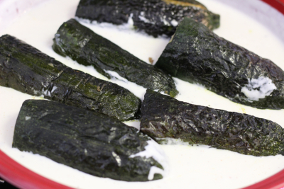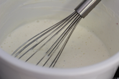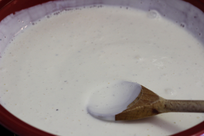 I en bolle bland sammen yoghurt,egg ,vann , maizenna ,salt og pepper sammen .
