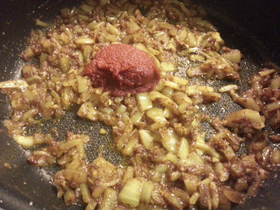 Tilsett løk,hvitløk og krydder i gryten og stek ved svak varme i ca 5 minutter til løken er myk.Rør ofte.