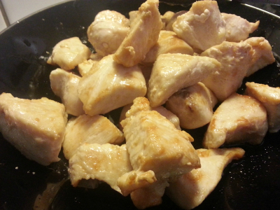 Legg kyllingen tilbake i gryten,sammen med kraften som har samlet seg på tallerken,og bland godt alt sammen.