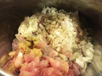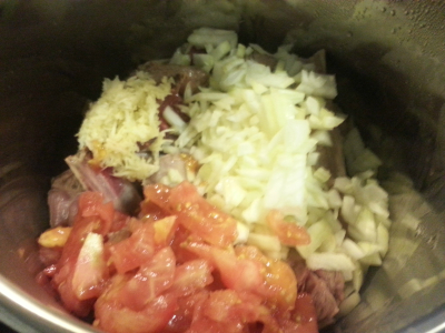 2dl vann(kjøttet og grønnesaker slipper mye væske i trykkoker så du trenger ikke mye vann)