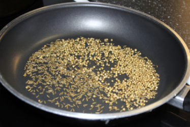 Pyntes med hakket koriander,olivenolje ,spisskummen og harisa(harisa er nordafrikansk chilipurre)