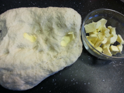 Sett deigen på kjøkkenbenken med lett mel under og elt videre,tilsett smør og elt i 8-10 minutter
