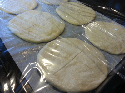 Dekk med plastfolje,la den heves 1 time eller 1 og halv.