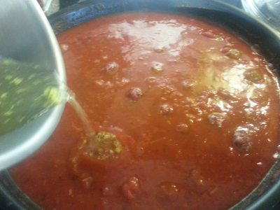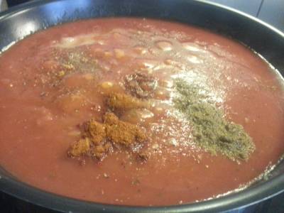 Tilsett persille, koriander og tomatpurre ,fres raskt og tilsett resten av ingredienser(unntatt kraften)