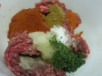 I en stor bolle ha kjøttet og resten av ingredienser.Bland godt sammen.