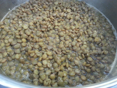 I en kjele ha vannet og linsene,kok opp så ha på lokken og la den små koke i 20 minutter.