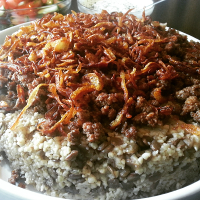 Kan lages fra rise eller bulgur med linser og uten kjøtt eller med kjøtt.og stekt løk.