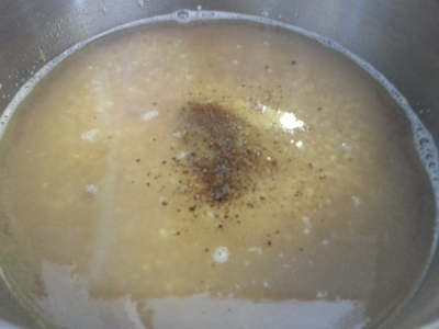 Bland sammen 7 1/2 av linser væske(den skal være varm) med 2 kyllingbuljong ,tilsett i kjelen med 1ts spisskummen ,litt pepper og salt.