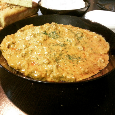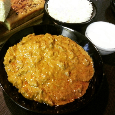 Serveres med kokt ris,nanbrød og raita eller yoghurt.