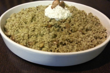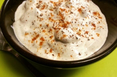 Bland sammen yoghurt,hvitløk,salt,paprika,cayenne,koriander og sitron.