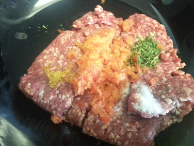 Bland alle ingrediensene sammen godt.Du kan la kjøttet stå i kjøleskapet i noen timer eller overnatta og du kan lage det med engang.