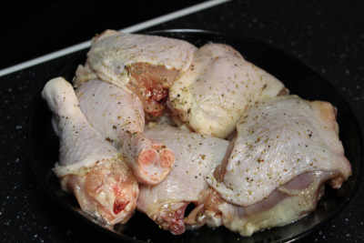 Vask kyllingen så tørke med kjøkkenhåndkle ,krydd med salt og pepper.