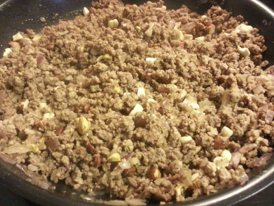Stek i noen minutter ,tilsett nøttene og granateplesirup.Smak til med salt og pepper.Legg til side.