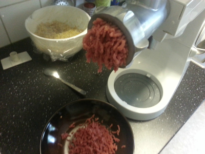 Varm en stekepannet med olje og tilsett løken ,fres til den er blank og myk.Tilsett kjøttdeigen ,krydder og salt.