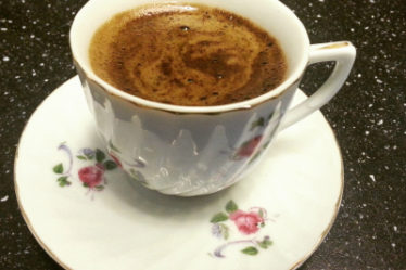 Når te er ferdig ha litt sukker i en kopp eller små glass og hell te ,rør inn og drikk 😉